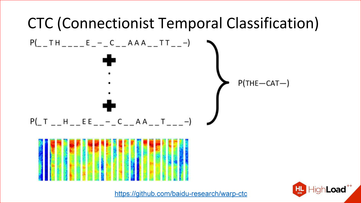 Еще одна безумно важная вещь, про которую почти нигде не говорят, но без которой не работает ни распознавание речи Google, ни Baidu, ни Microsoft – CTC.