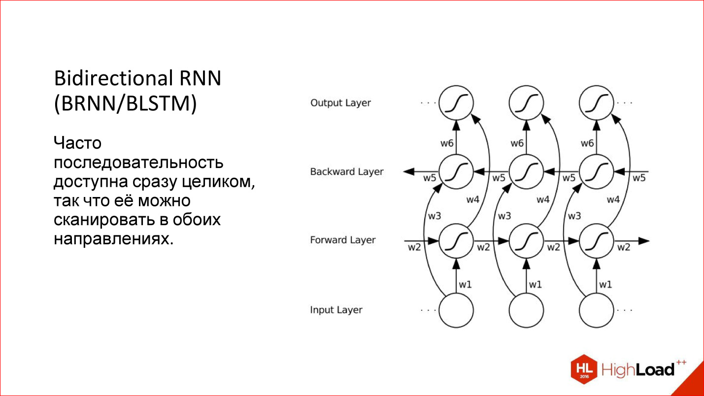 Ответ: Для большинства задач хорошо работают простые нейросети из коробки LSTM, достаточной глубины и достаточного размера. Есть много задач классификации текста, классификации чего угодно в последовательностях. Если вы начинаете с какой-то из LSTM-сетей, это в принципе, нормальный старт. Если вы понимаете, что вам полезна в этом месте двунаправленность, вы делаете Bidirectional LSTM.